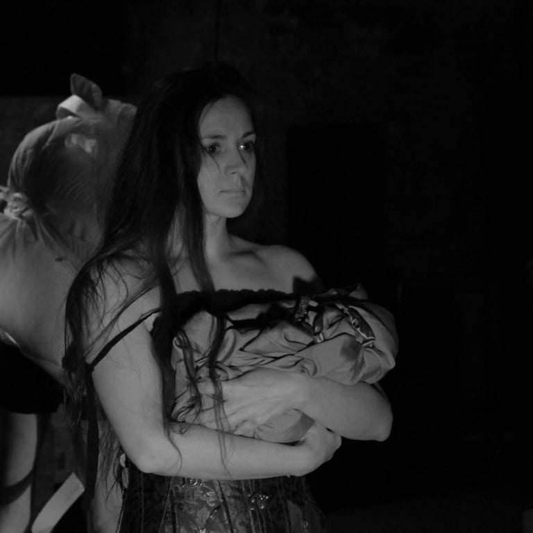 About 100 roles in Theatre. She portrays powerful villains, psychological antiheroes, unhinged characters, fantasy creatures, tragic heroines, seductive manipulators, poetic rebels, tortured souls, and surreal archetypes. Her range includes roles such as: